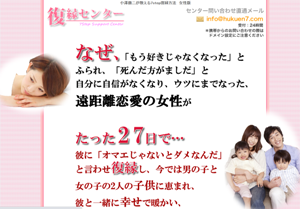 復縁を提供するスタッフ=専門家が集まった復縁提供会社による復縁マニュアル。雑誌やテレビでも紹介されており、無料相談の中には珍しい、電話(30分)・面談(1時間)による相談が含まれている。 |